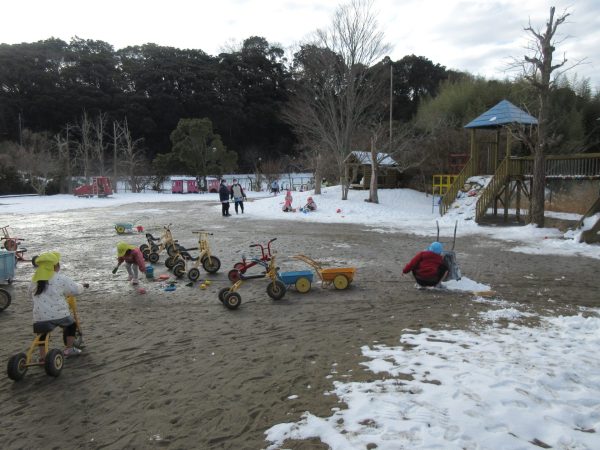 登園すると大喜びで園庭をかけまわっていました⛄