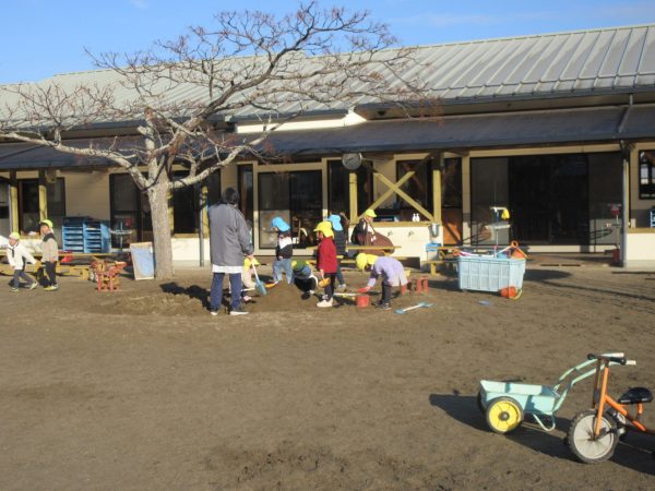 保育始めとなった今日は、天気もよく朝から園庭には元気な子どもたちの